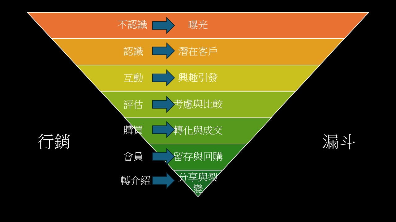 數位行銷漏斗描述了流量的轉化過程,從曝光到轉發分享,每一個步驟都需要仔細考慮。